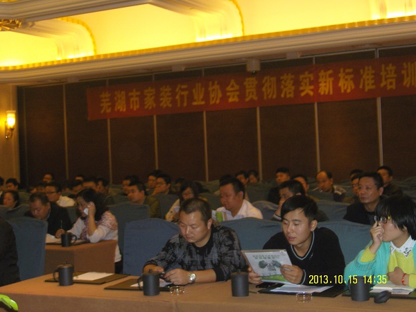 由芜湖市住宅室内装饰行业协会组织的“住宅室内装饰装修工程”新规范、新标准培训班于2013年10月15日下午在汉爵阳明大酒店举办,对“住宅室内装饰装修工程质量验收规范”(JGJ/T304——2013),“民用建筑工程室内环境污染控制标准”(GB50325),“家居家装行业经营服务规范”以及“住宅装修工程电气及智能化系统设计、施工与验收”等新标准新规范进行详细讲解,我市家装企业近百名企业负责人及相关技术人员参加此次培训,此次新标准、新规范的贯彻落实在行业内起到很好的宣传作用,届时还要为与家装相关的建材商举办此类专业培训班。