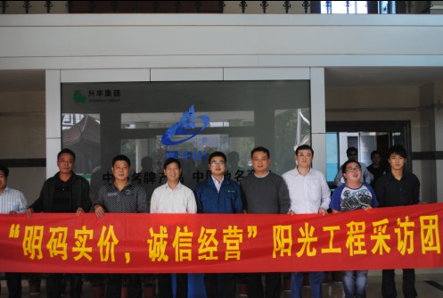 采访团此行最后一站也受到升华玉峰新材公司领导亲自接待和欢迎,为我们此行到来举办了一个简短的座谈会,装协领导分别就“明码实价,诚信经营”,进行了阐述,升华云峰新材也把企业在节能减排、通过自主创新科技等工作进行了讲解。欢迎仪式结束后,新闻采访团参观了升华的产品展示厅以及生产车间,详细了解了板材生产工艺流程,装协领导也对升华公司的先进工艺和环保概念表示高度赞许。
